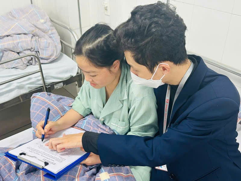 Nhân viên công tác xã hội thực hiện khảo sát mức độ hài lòng của người bệnh về chất lượng khám chữa bệnh