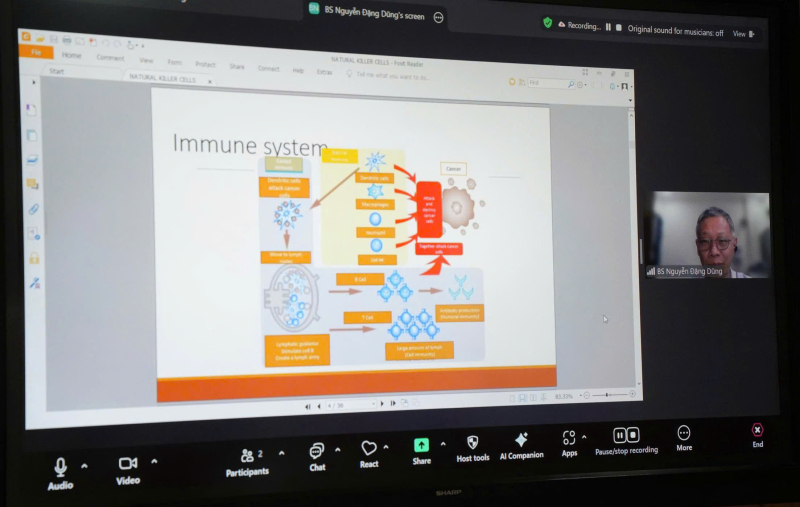 PGS.TS. Nguyễn Đặng Dũng – Chủ nhiệm bộ môn Miễn dịch, Học viện Quân Y trình bày trực tuyến chuyên đề: Liệu pháp miễn dịch điều trị ung thư bằng tế bào NK.