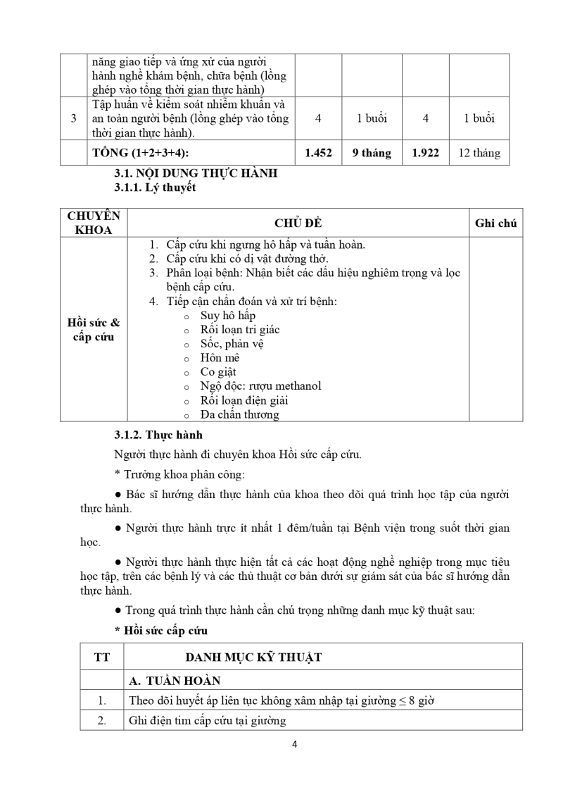 Nội dung thực hành khám bệnh, chữa bệnh đối với bác sĩ cấp giấy phép hành nghề phạm vi hành nghề chuyên khoa HSCC 2026/03/05 03:27