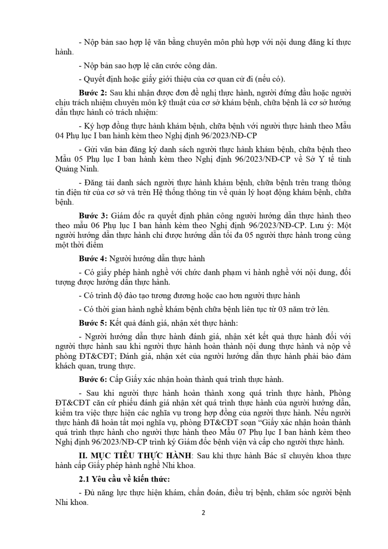 Nội dung thực hành khám bệnh, chữa bệnh đối với bác sĩ cấp giấy phép hành nghề phạm vi hành nghề nhi khoa 2026/03/05 03:17