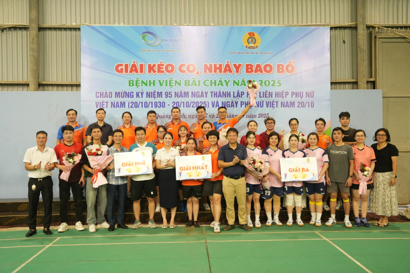 Lễ Khai mạc Giải thể thao Kéo co, Nhảy bao bố năm 2025 đã diễn ra vào ngày 17/10 với sự tham dự của BSCKII Hoàng Văn Quyết – Phó Giám đốc Bệnh viện Bãi Cháy, BSCKII Thái Xuân Hường – Chủ tịch Công đoàn Bệnh viện, cùng các đồng chí trong Ban Chấp hành Công đoàn, lãnh đạo các khoa, phòng và các vận động viên đến từ 5 khối công đoàn: Hành chính, Nội, Ngoại, Ung bướu, Cận lâm sàng.
