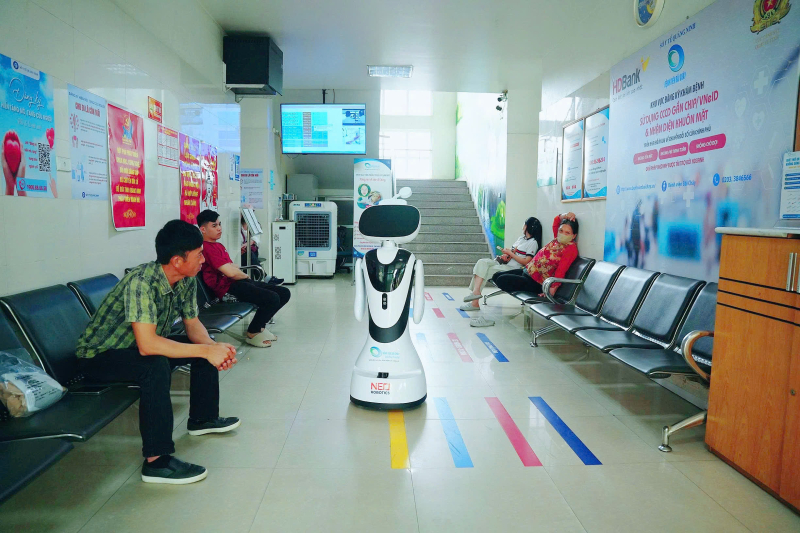 Song song với các giải pháp số hóa quy trình khám chữa bệnh, bệnh viện đang thí điểm ứng dụng robot trong hoạt động bệnh viện nhằm hỗ trợ hướng dẫn người bệnh, cung cấp thông tin dịch vụ và hỗ trợ một số hoạt động vận hành. Việc ứng dụng robot bước đầu mang lại hiệu quả tích cực, góp phần xây dựng hình ảnh bệnh viện hiện đại, thân thiện.