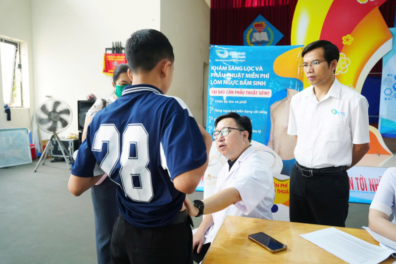 Tại chương trình, với sự chỉ đạo chuyên môn của BSCKII Hoàng Văn Quyết – Phó Giám đốc Bệnh viện Bãi Cháy, Đoàn bác sĩ chuyên khoa của Bệnh viện Bãi Cháy đã trực tiếp khám sàng lọc, đánh giá hình thái lồng ngực cho 1818 học sinh. Quá trình thăm khám đã phát hiện 82 trẻ mắc các dị tật lồng ngực như lõm ngực, ức gà… ở các mức độ khác nhau. Những dị tật lồng ngực này có thể ảnh hưởng lâu dài đến chức năng tim, phổi, sức khỏe thể chất và tâm lý của trẻ nếu không được phát hiện sớm và điều trị kịp thời.