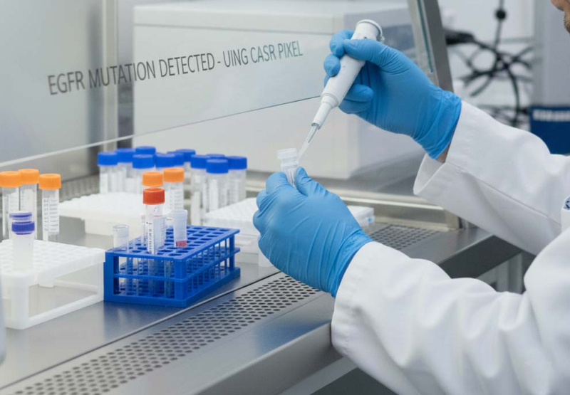 Theo BSCKI Mai Tuấn Hưng – Phó Trưởng khoa Ung bướu 2, Bệnh viện Bãi Cháy cho biết: “Sự phát triển của y khoa thế giới đã cho phép tìm ra các đột biến trên gene thúc đẩy tăng sinh tế bào ung thư. Trong đó đột biến EGFR chiếm khoảng 50% trên bệnh nhân ung thư phổi không tế bào nhỏ người châu Á. Trên cơ sở xét nghiệm sinh học phân tử để phát hiện đột biến gen EGFR đặc hiệu trong tế bào ung thư, liệu pháp nhắm trúng đích ra đời với bản chất là các thuốc ức chế lên các thụ thể gene này (thuốc ức chế tyrosin kinase – TKIs) làm cắt đứt các dẫn truyền tín hiệu tăng sinh tế bào, từ đó giúp kìm hãm quá trình tăng sinh, phát triển, xấm lấn và di căn ung thư đã trở thành tiến bộ mới trong điều trị ung thư phổi.”