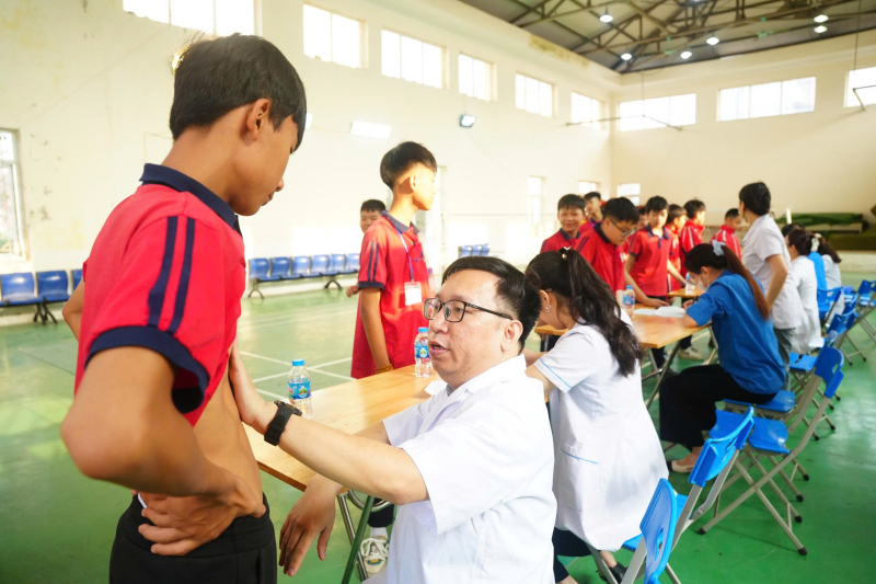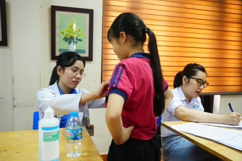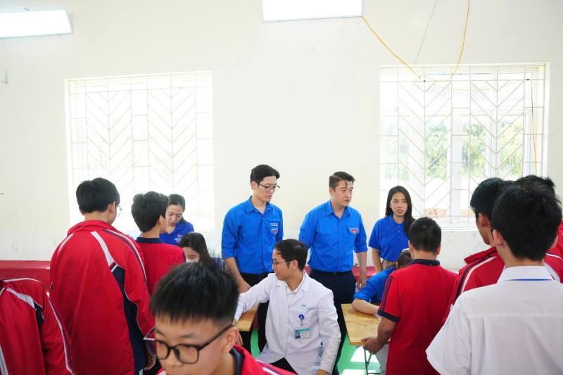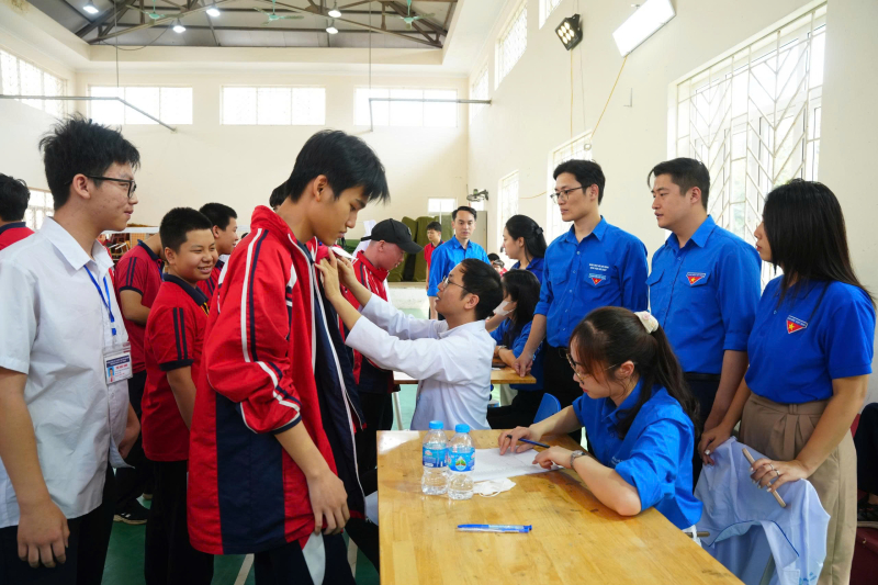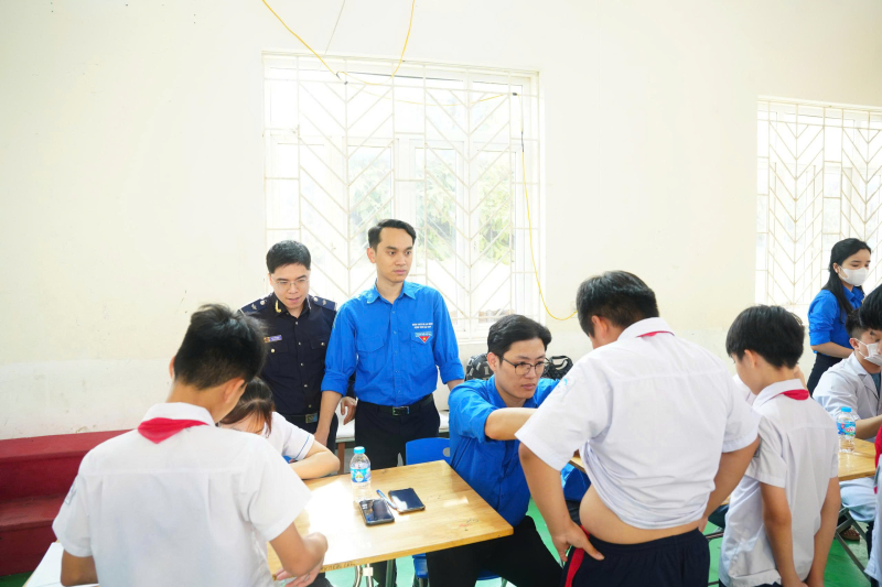 Đoàn Thanh niên Bệnh viện Bãi Cháy phối hợp với các đơn vị Đoàn Thanh niên phường Việt Hưng, Chi đoàn Hải quan cửa khẩu Cảng Hòn Gai tham gia khám sàng lọc dị tật lồng ngực bẩm sinh tại Trường THCS Nguyễn Trãi, phường Việt Hưng, tỉnh Quảng Ninh