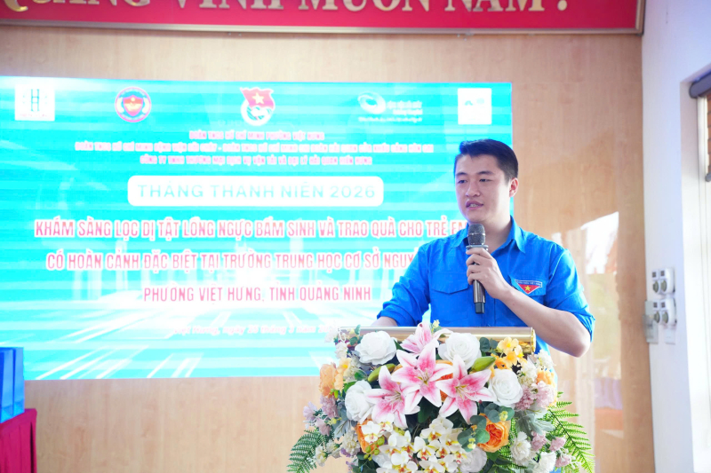 Hướng tới kỷ niệm Ngày thành lập Đoàn TNCS Hồ Chí Minh (26/3) và Tháng thanh niên tình nguyện, ngày 25/3/2026, Đoàn Thanh niên Bệnh viện Bãi Cháy phối hợp với các đơn vị Đoàn Thanh niên phường Việt Hưng, Chi đoàn Hải quan cửa khẩu Cảng Hòn Gai, Công ty TNHH Thương mại Dịch vụ vận tải và Đại lý hải quan Hiển Hưng tham gia khám sàng lọc dị tật lồng ngực bẩm sinh và trao quà cho trẻ em có hoàn cảnh đặc biệt tại Trường THCS Nguyễn Trãi, phường Việt Hưng, tỉnh Quảng Ninh.