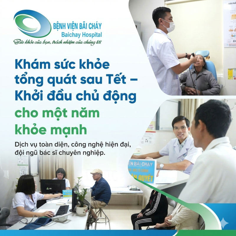 Chủ động khám sức khỏe tổng quát sau Tết là cách mỗi người tự trao cho mình và gia đình món quà ý nghĩa nhất – sức khỏe bền vững để bắt đầu một năm mới an lành và trọn vẹn. Với đội ngũ bác sĩ chuyên gia chất lượng cao, trang thiết bị y tế đồng bộ, hiện đại, quy trình khám chữa bệnh thông minh, Bệnh viện Bãi Cháy luôn đồng hành cùng người dân trong hành trình chăm sóc và bảo vệ sức khỏe.