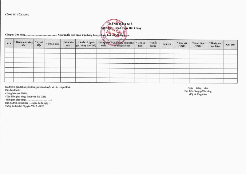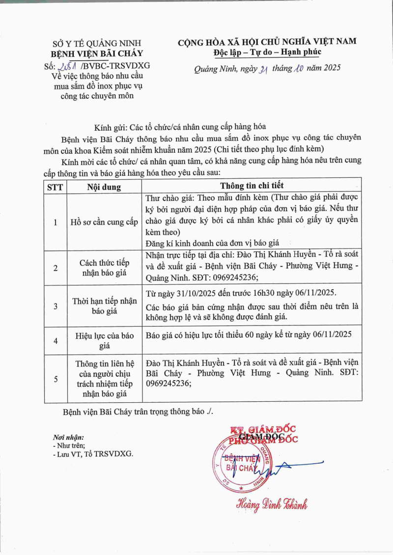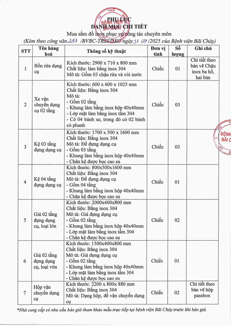 Thông báo số 2051 về nhu cầu mua sắm đồ inox phục vụ công tác chuyên môn