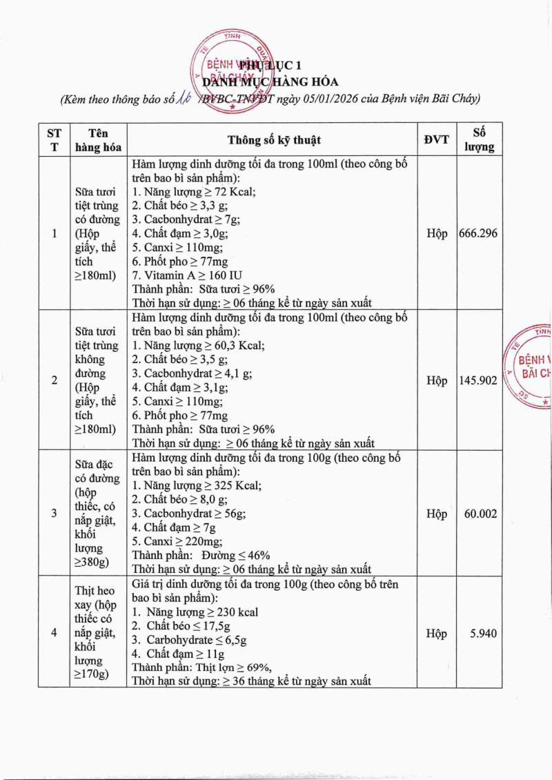 Thông báo 16 nhu cầu mua sắm hiện vật bồi dưỡng độc hại năm 2026