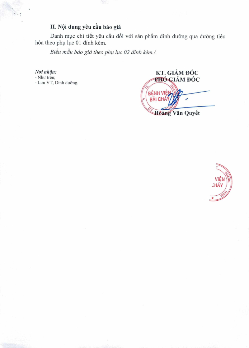 Thông báo 1803 yêu cầu báo giá và các thông tin về sản phẩm dinh dưỡng