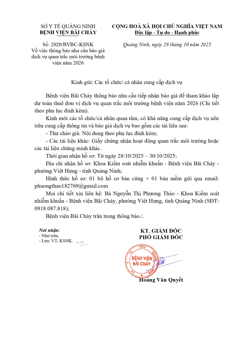 Thông báo 2020 nhu cầu báo giá dịch vụ quan trắc môi trường bệnh viện năm 2026 2025/10/28 09:24 Thông báo 2020 nhu cầu báo giá dịch vụ quan trắc môi trường bệnh viện năm 2026