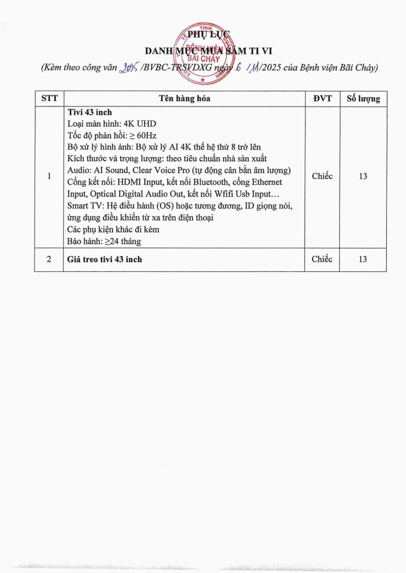 Thông báo 2095 nhu cầu mua sắm ti vi