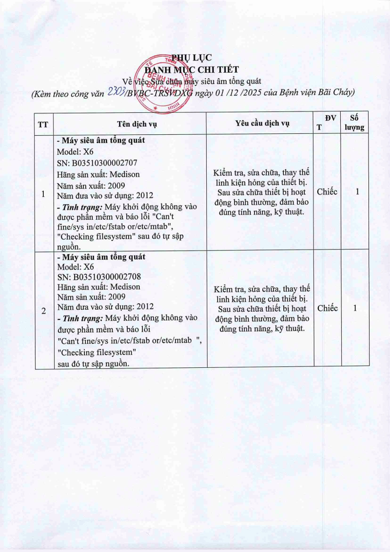 Thông báo 2395 mua sắm bổ sung y dụng cụ cho các khoa phòng năm 2025