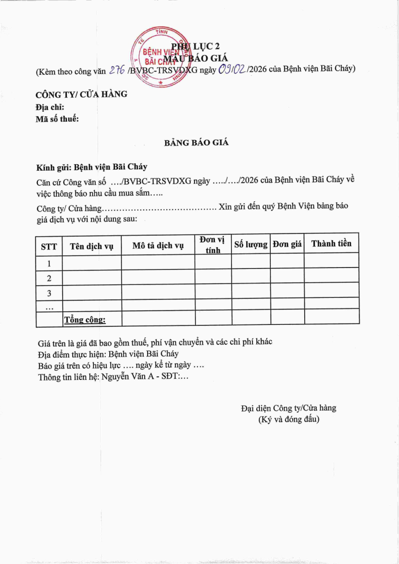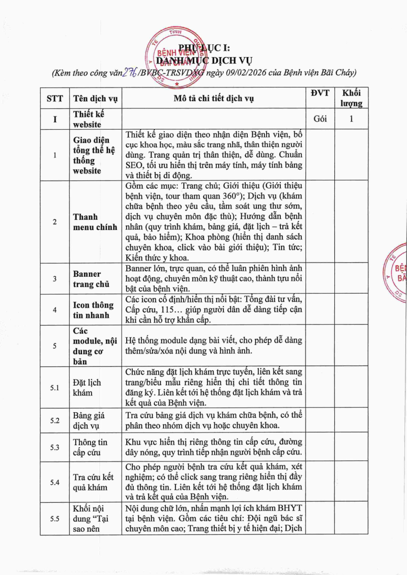 Thông báo 276 thuê đơn vị cung cấp dịch vụ thiết kế giao diện website, hosting lưu trữ cho website truyền thông bệnh viện