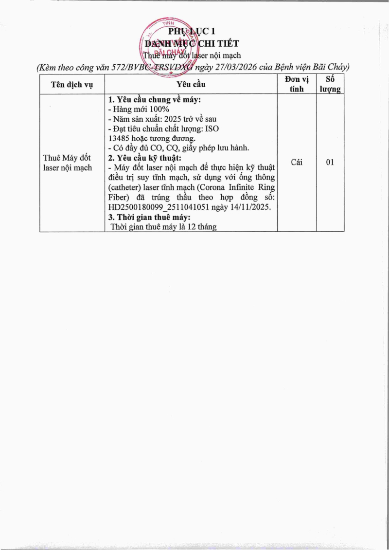 Thông báo 572 nhu cầu thuê máy đốt laser nội mạch