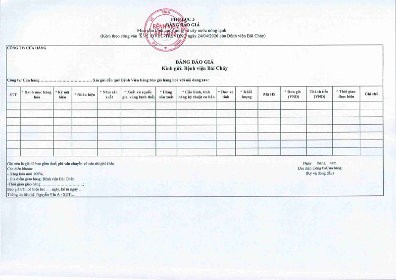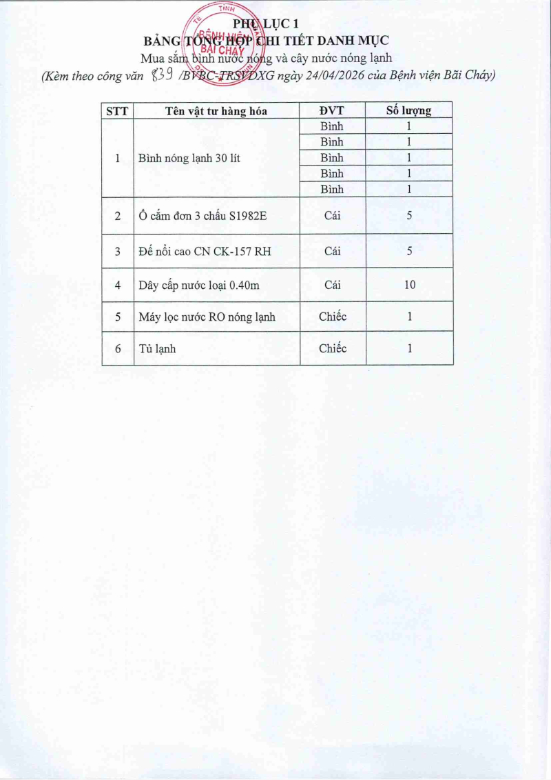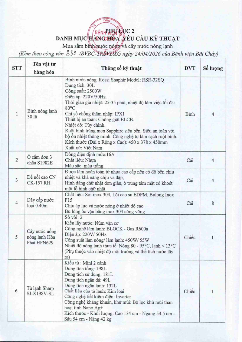 Thông báo 839 về nhu cầu mua sắm bình nước nóng và cây nước nóng lạnh