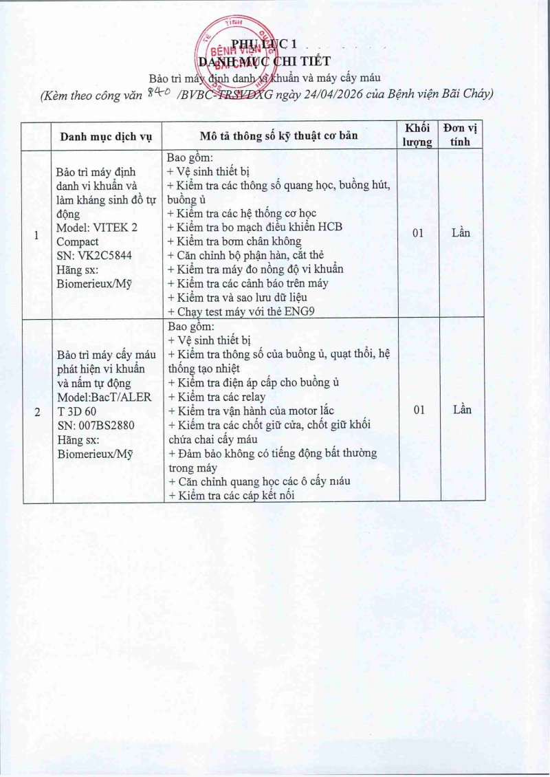 Thông báo 840 về nhu cầu bảo trì máy định danh vi khuẩn và cấy máu