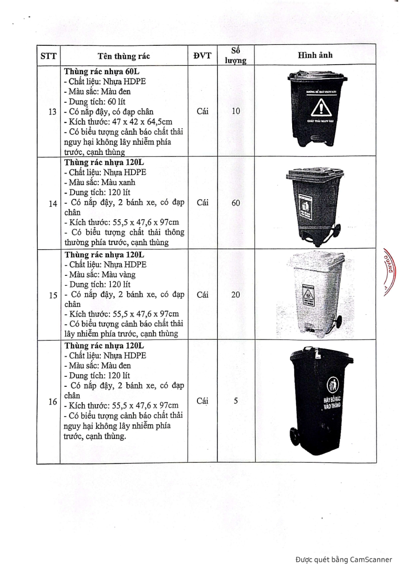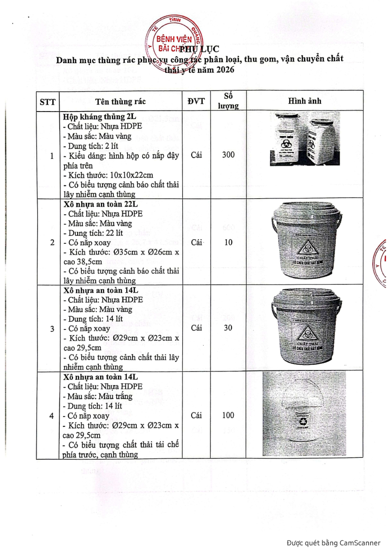 Thông báo số 2340 về nhu cầu báo giá thùng rác phục vụ công tác phân loại, thu gom và vận chuyển chất thải y tế năm 2026 2025/12/04 04:12
