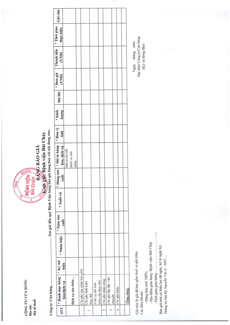 Thông báo số 544 về nhu cầu thuê đơn vị cung cấp dịch vụ phun thuốc diệt muỗi và côn trùng phòng chống dịch tại bệnh viện Bãi Cháy năm 2026