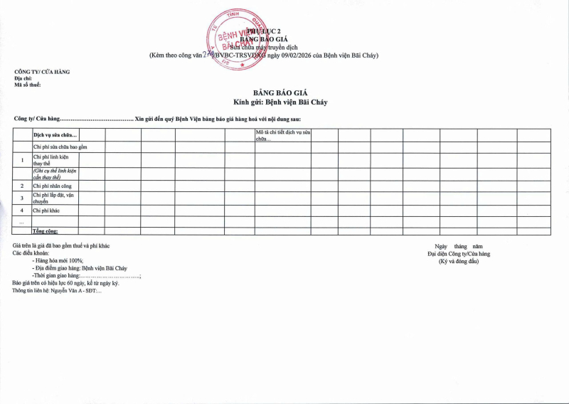 Thông báo số 544 về nhu cầu thuê đơn vị cung cấp dịch vụ phun thuốc diệt muỗi và côn trùng phòng chống dịch tại bệnh viện Bãi Cháy năm 2026