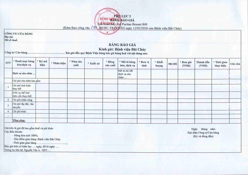 Thông báo số 544 về nhu cầu thuê đơn vị cung cấp dịch vụ phun thuốc diệt muỗi và côn trùng phòng chống dịch tại bệnh viện Bãi Cháy năm 2026