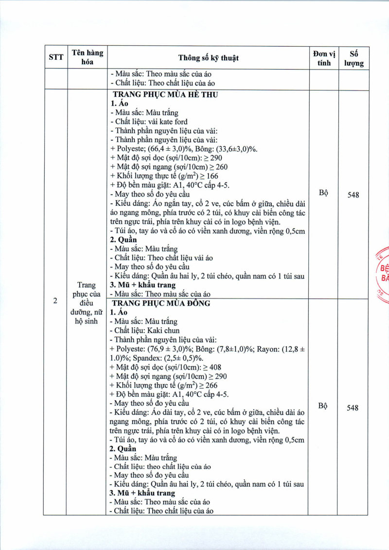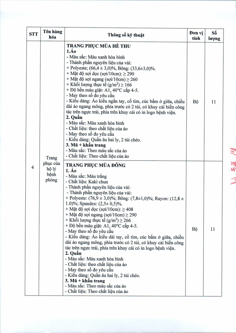 Thông báo số 408 về nhu cầu mua sắm trang phục bảo hộ nhân viên y tế năm 2026