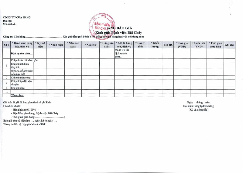 Thông báo số 486 về nhu cầu mua sắm thiết bị y tế cho nhà thuốc bệnh viện năm 2026