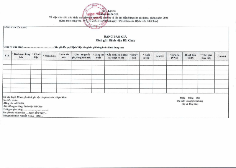 Thông báo số 497 về nhu cầu dán chữ, dán kính, mua thẻ tên, mua cây standee và lắp đặt biển bảng cho các khoa, phòng năm 2026 2026/03/19 06:38