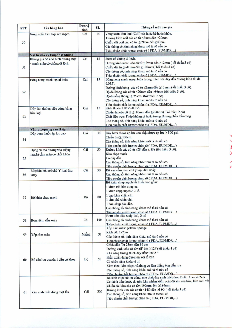 Thông báo số 709 về nhu cầu mua sắm vật tư can thiệp mạch, xquang can thiệp 2026,2027 2026/04/10 13:52