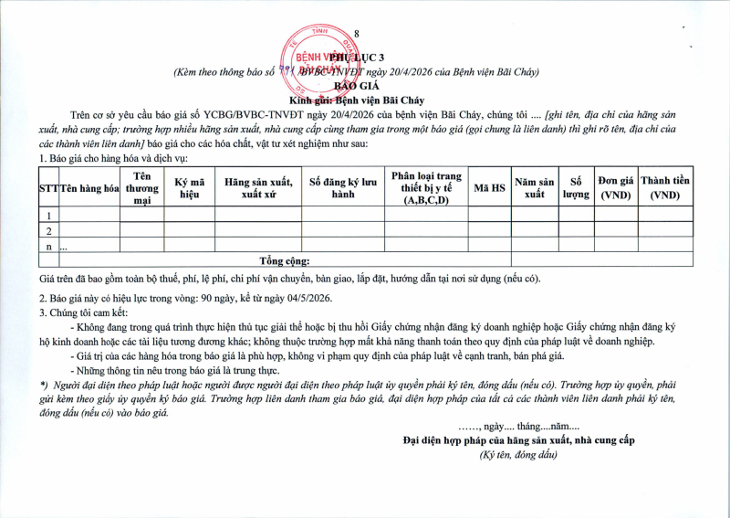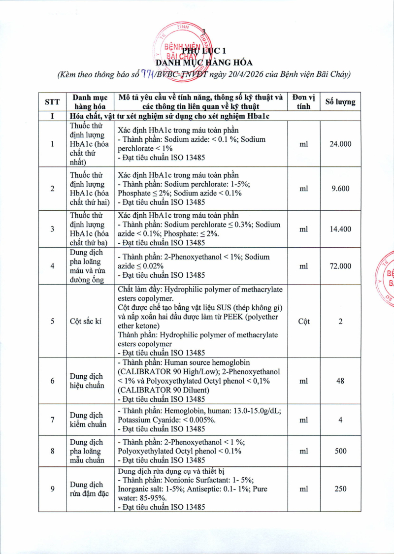 Thông báo số 771 về nhu cầu mua sắm hóa chất, vật tư xét nghiệm phục vụ công tác chuyên môn năm 2026 – 2027 (Đợt 3) Hôm nay 07:02