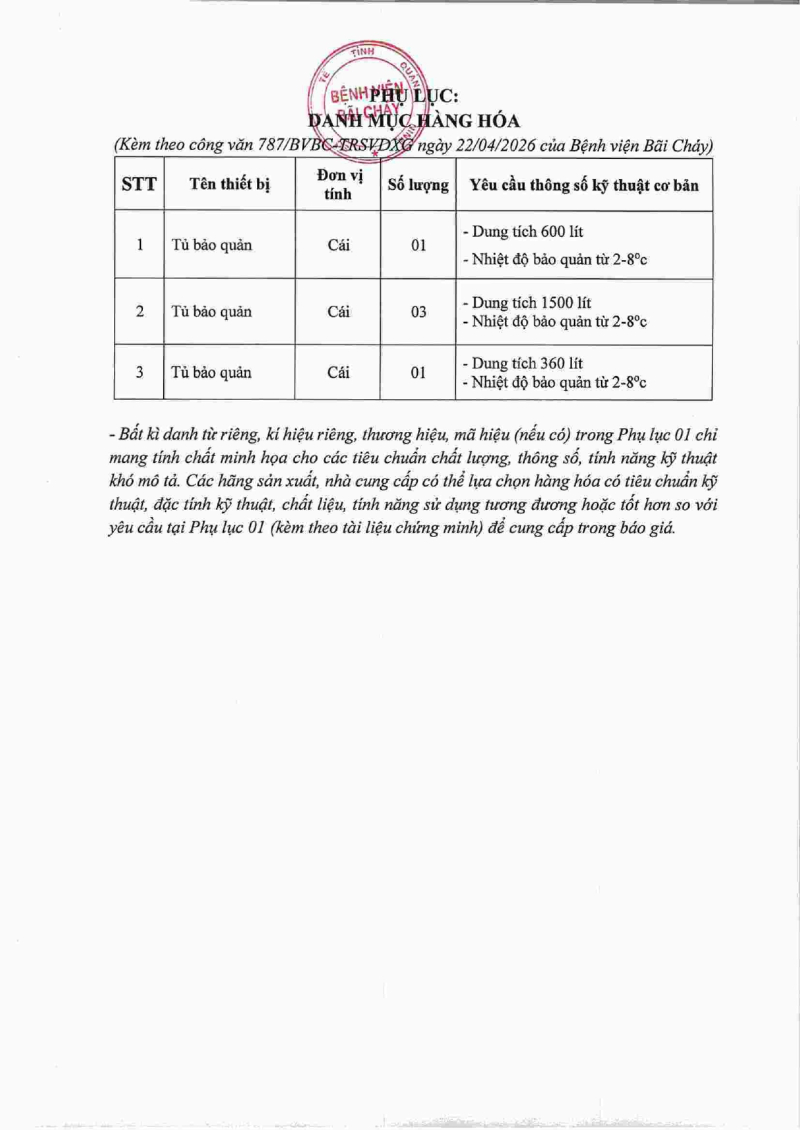 Thông báo số 787 về nhu cầu mua tủ bảo quản thuốc và vacxin phục vụ công tác tiêm vacxin dịch vụ tại Bệnh viện Bãi Cháy Hôm nay 09:35