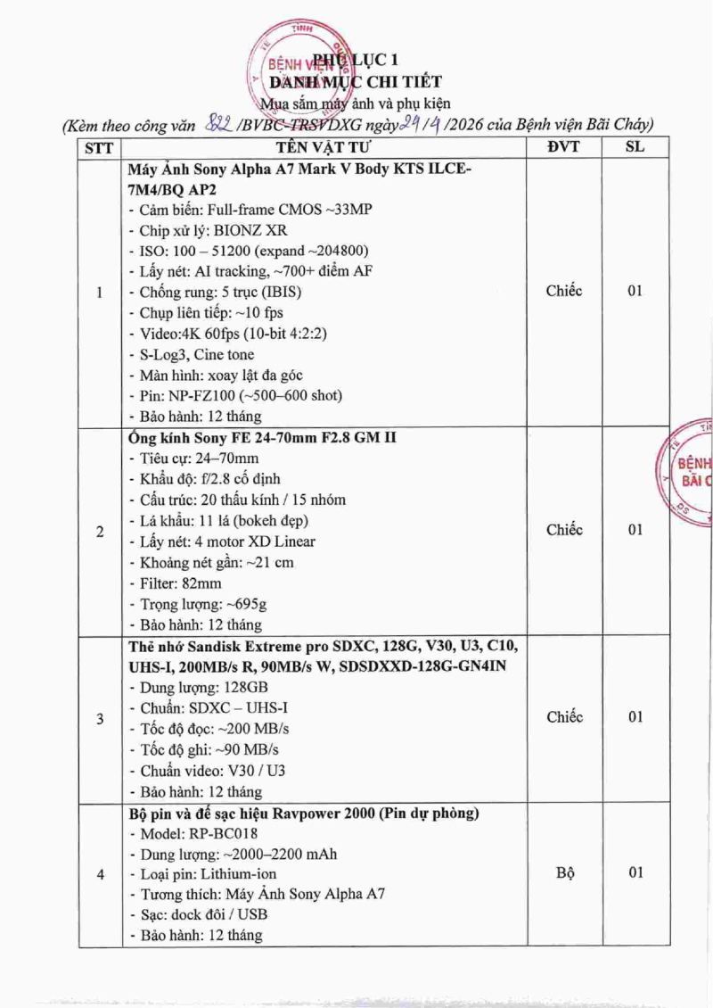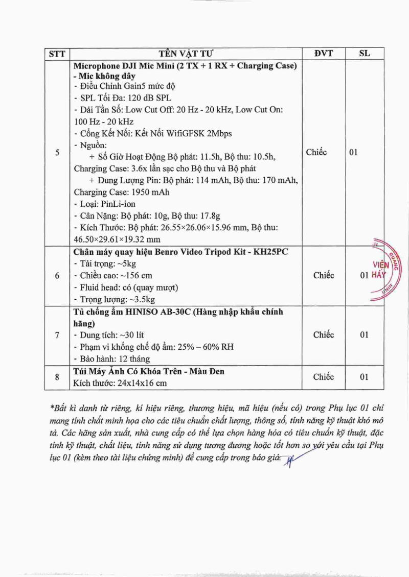 Thông báo số 822 về nhu cầu mua sắm máy ảnh và phụ kiện