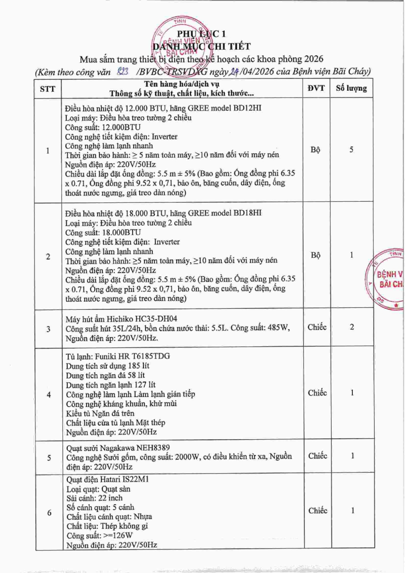 Thông báo số 823 về nhu cầu mua sắm trang thiết bị điện theo kế hoạch khoa phòng năm 2026 Hôm nay 06:23