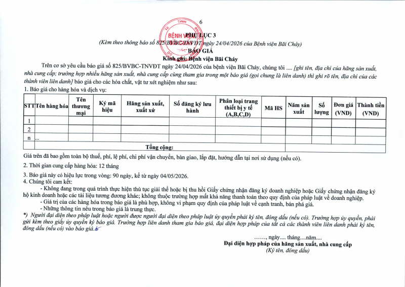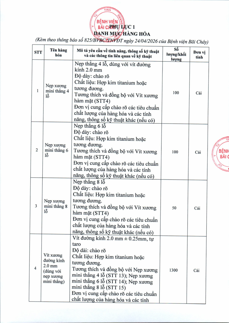 Thông báo số 825 về nhu cầu mua sắm nẹp vít răng hàm mặt phục vụ công tác chuyên môn 2026 - 2027