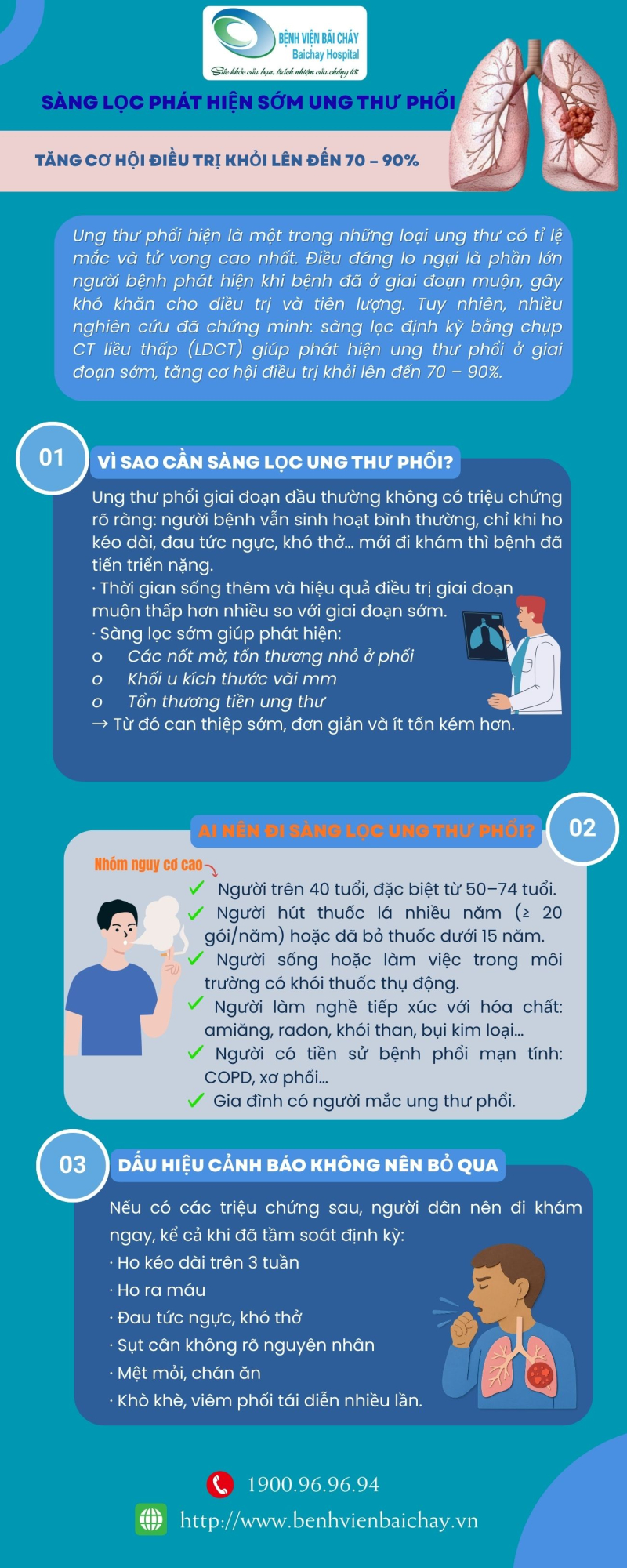 Infographic: Sàng lọc sớm ung thư phổi, giúp tăng cơ hội điều trị khỏi lên đến 70 – 90%