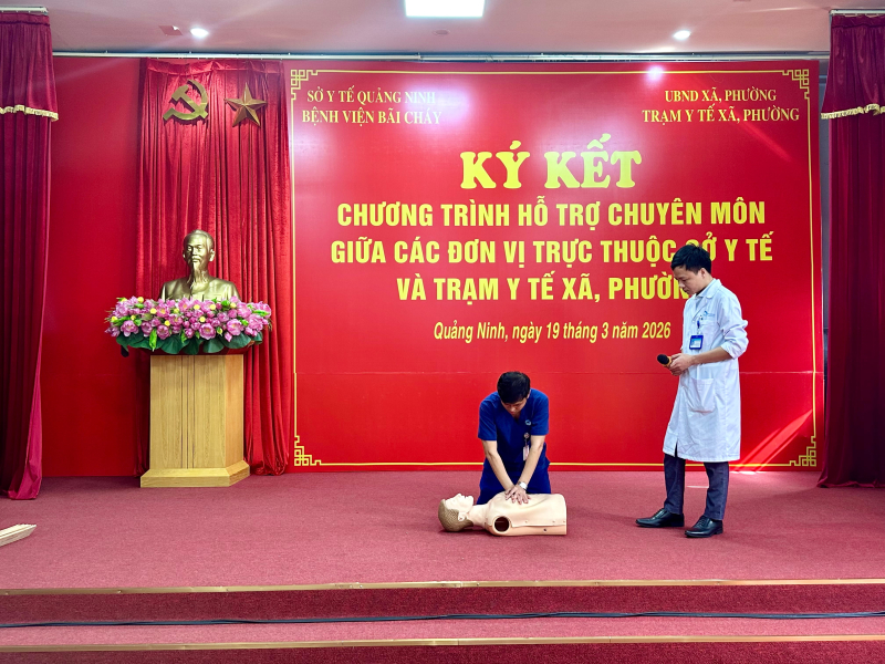 Chiều ngày 19/03/2026, Bệnh viện Bãi Cháy tổ chức chương trình tập huấn “Sơ cấp cứu ban đầu” dành cho đội ngũ nhân viên y tế thuộc 06 Trạm Y tế phường, xã nằm trong diện được bệnh viện hỗ trợ chuyên môn toàn diện.