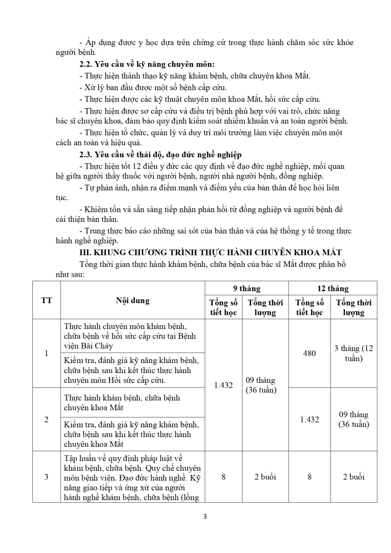 Nội dung thực hành khám bệnh, chữa bệnh đối với bác sĩ cấp giấy phép hành nghề phạm vi hành nghề chuyên khoa Mắt 2026/03/05 03:56