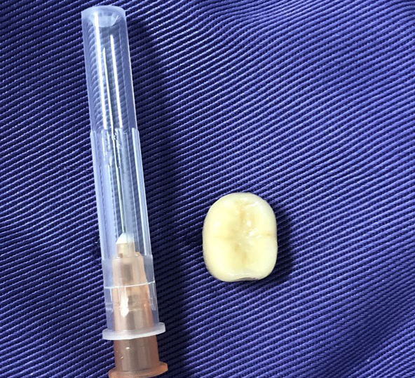 Hình ảnh chiếc răng được lấy ra từ lòng phế quản
