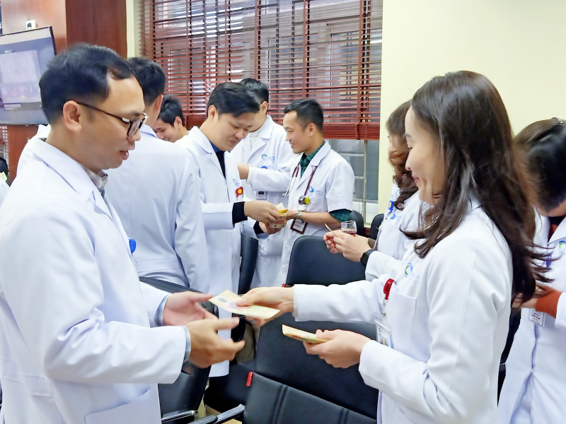 Ban lãnh đạo Bệnh viện lì xì đầu năm mới.