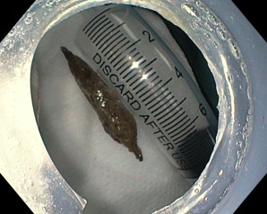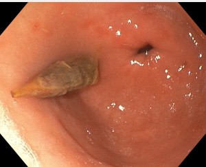 Dị vật hạt táo đỏ sau khi được lấy thành công qua nội soi