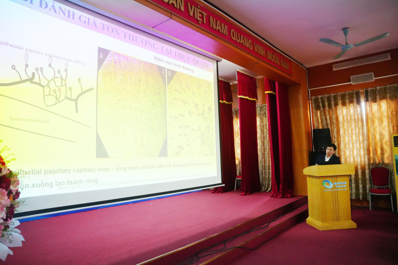 Với chuyên đề “Phân loại đặc điểm tổn thương bằng NBI và ống soi phóng đại: Nhận diện mạch máu & bề mặt niềm mạc”, TS. BS. Phạm Châu - Bệnh viện Quân Y 103 tập trung làm rõ vai trò của nội soi ánh sáng dải hẹp (NBI) kết hợp ống soi phóng đại trong phân loại đặc điểm tổn thương đường tiêu hóa. Báo cáo nhấn mạnh việc nhận diện các biến đổi vi mạch và cấu trúc bề mặt niêm mạc là yếu tố then chốt giúp phân biệt tổn thương lành tính và ác tính.