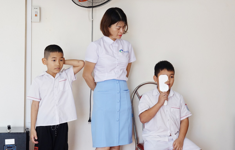 Tại chương trình khám sức khỏe học đường, các em học sinh đã được các bác sĩ đến từ các chuyên khoa Mắt, Răng hàm mặt, Nhi của Bệnh viện Bãi Cháy khám sức khỏe sàng lọc.