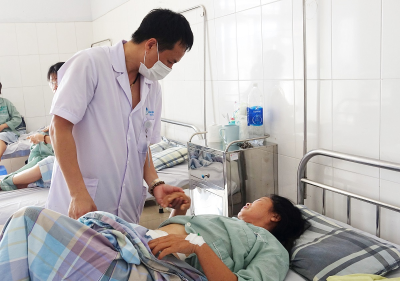 Bác sĩ CKI Nguyễn Văn Mạnh – Phó Trưởng Khoa Sản, Bệnh viện Bãi Cháy thăm khám cho người bệnh sau phẫu thuật