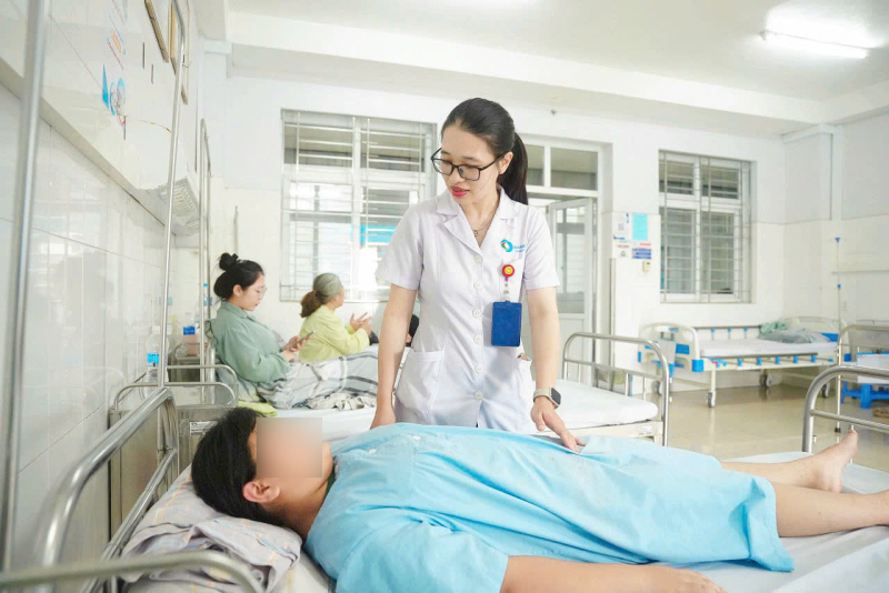 Ths.BS Trần Thị Diệu Anh– Khoa Phụ Sản, Bệnh viện Bãi Cháy thăm khám, tư vấn cho bệnh nhi sau phẫu thuật