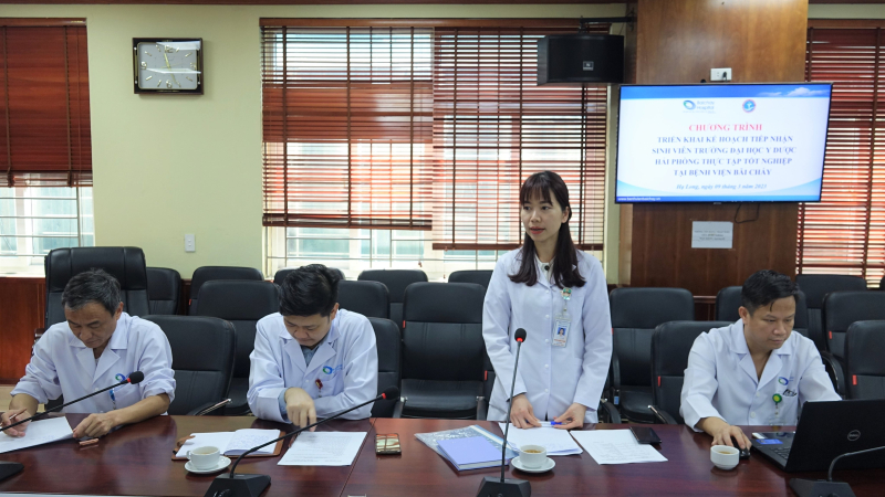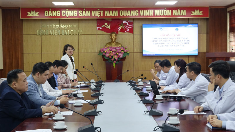 Thay mặt Trường đại học Y Dược Hải Phòng, PGS.TS. Đinh Thị Thanh Mai - Phó Hiệu trưởng nhà trường cảm ơn ban lãnh đạo Bệnh viện Bãi Cháy đã tạo điều kiện để các em sinh viên được thực tập tại Bệnh viện và hy vọng trong thời tới 2 bên tiếp tục hợp tác để các em sinh viên có môi trường thực tập tốt nhất.