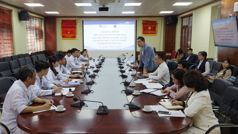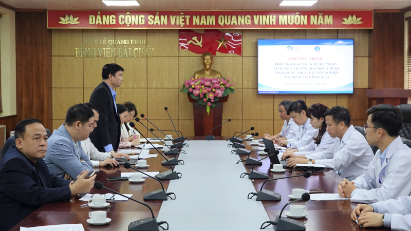 Ngày 09/03/2023, Đoàn công tác của Trường Đại học Y Dược Hải Phòng, do PGS.TS. Đinh Thị Thanh Mai - Phó Hiệu trưởng làm trưởng đoàn có buổi làm việc với Bệnh viện Bãi Cháy Quảng Ninh về việc thống nhất chương trình tiếp nhận sinh viên Y6K39 đến thực tập tại Bệnh viện.