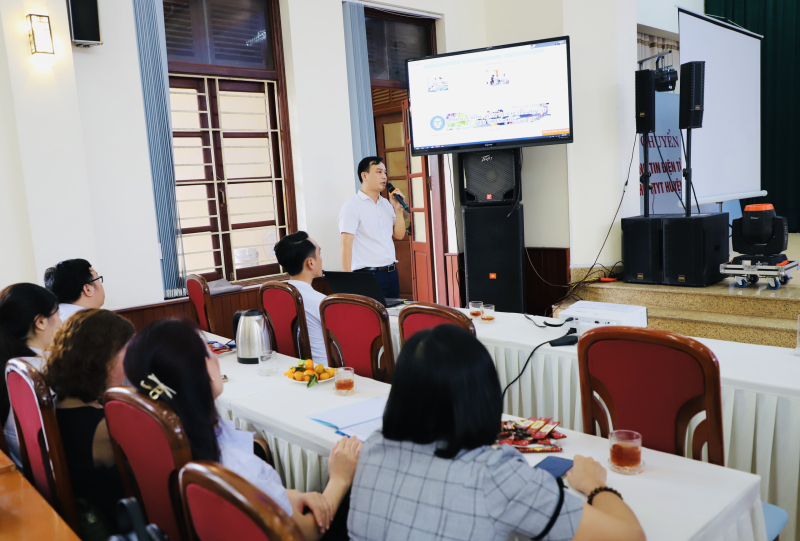 Thạc sĩ, bác sĩ Trần Thanh Luận, PGĐ bệnh viện báo cáo công tác hỗ trợ, chuyển giao KT cho y tế tuyến huyện.