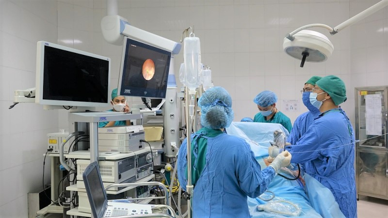 Các bác sĩ BVBC tán sỏi niệu quản qua da cho người bệnh.