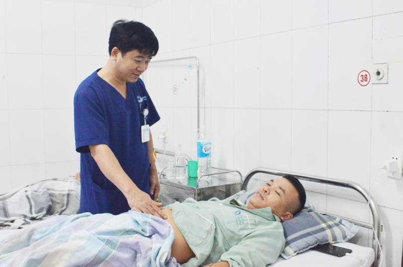 BS CKI Nguyễn Quảng Đại – Trưởng Khoa Nội Tiêu hóa, Bệnh viện Bãi Cháy thăm khám cho bệnh nhân sau can thiệp