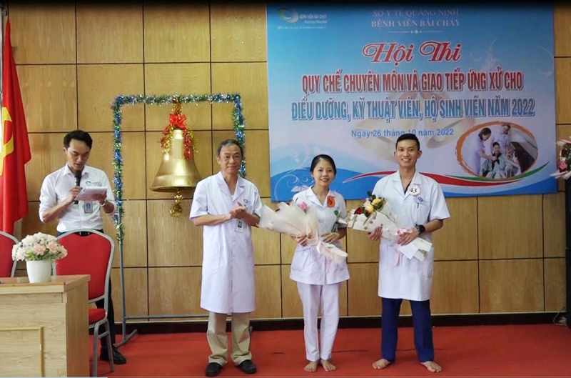 Hội thi quy chế chuyên môn và tay nghề cho Điều dưỡng, kĩ thuật viên, nữ hộ sinh (ĐD, NHS, KTV) của Bệnh viện Bãi Cháy được tổ chức từ ngày 8/9 đến 26/10/2022. Trải qua các Vòng thi Lý thuyết và Thực hành tay nghề, 50 thí sinh có tổng điểm các Vòng thi cao nhất đã được tuyển chọn từ 461 thí sinh tham gia Vòng chung kết Rung chuông vàng.